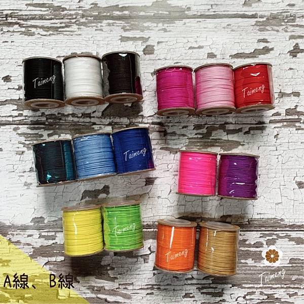 ▪️材質:尼龍。串珠專用的材料,又稱珠寶線、玉線,質地扎實偏硬有光澤,可編織手環、御守、平安符項鍊、吊牌掛繩等。A線 適用勾針:2~3號,B線 適用勾針:3~4號🧶🧵