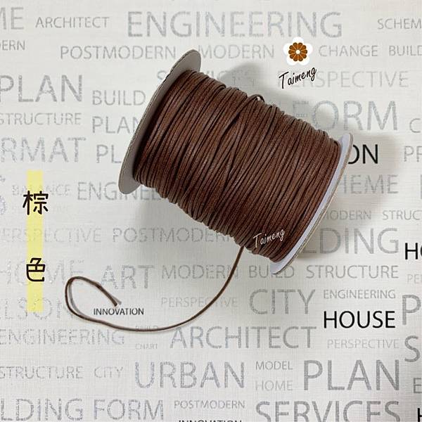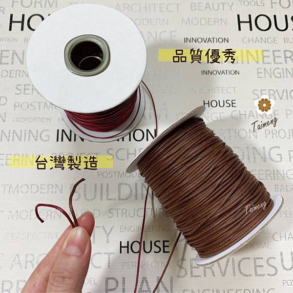 材質:棉上蠟,台孟的仿皮繩是棉繩加工上蠟合成,不怕蛀,不易發黴,表面耐水性好。